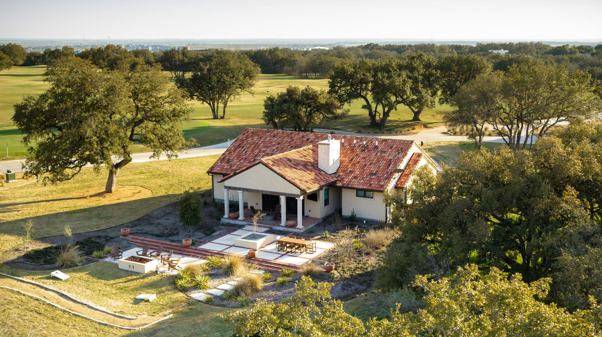 - One enhanced Ranch House casita tucked among Texas live oaks, featuring a private outdoor dining terrace, fire pit, native plantings, and views toward the first green.