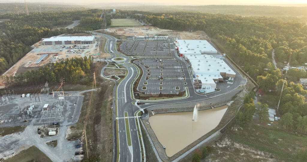 Pine Ridge at Morganton Park South was envisioned as a dynamic mixed-use destination that combines retail, dining, office space, and multi-family living in the heart of Southern Pines. Anchored by a Target shopping center and complemented by 500,000 square feet of additional commercial space and up to 650 apartment units, the development is connected by a one-mile parkway built through a public-private partnership. We were engaged to create a unique PUD zoning district and lead multiple phases of planning, design, and construction to bring this vision to life.